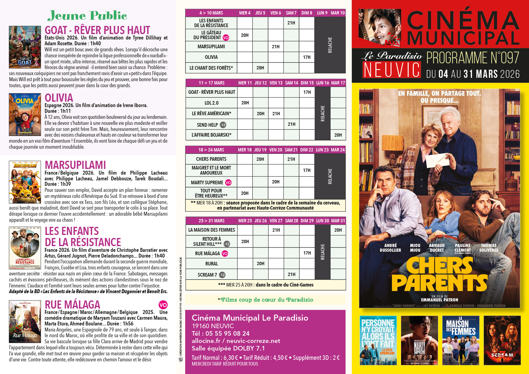 Cinéma Le ParadisioPlace de la Mairie19160 NEUVIC